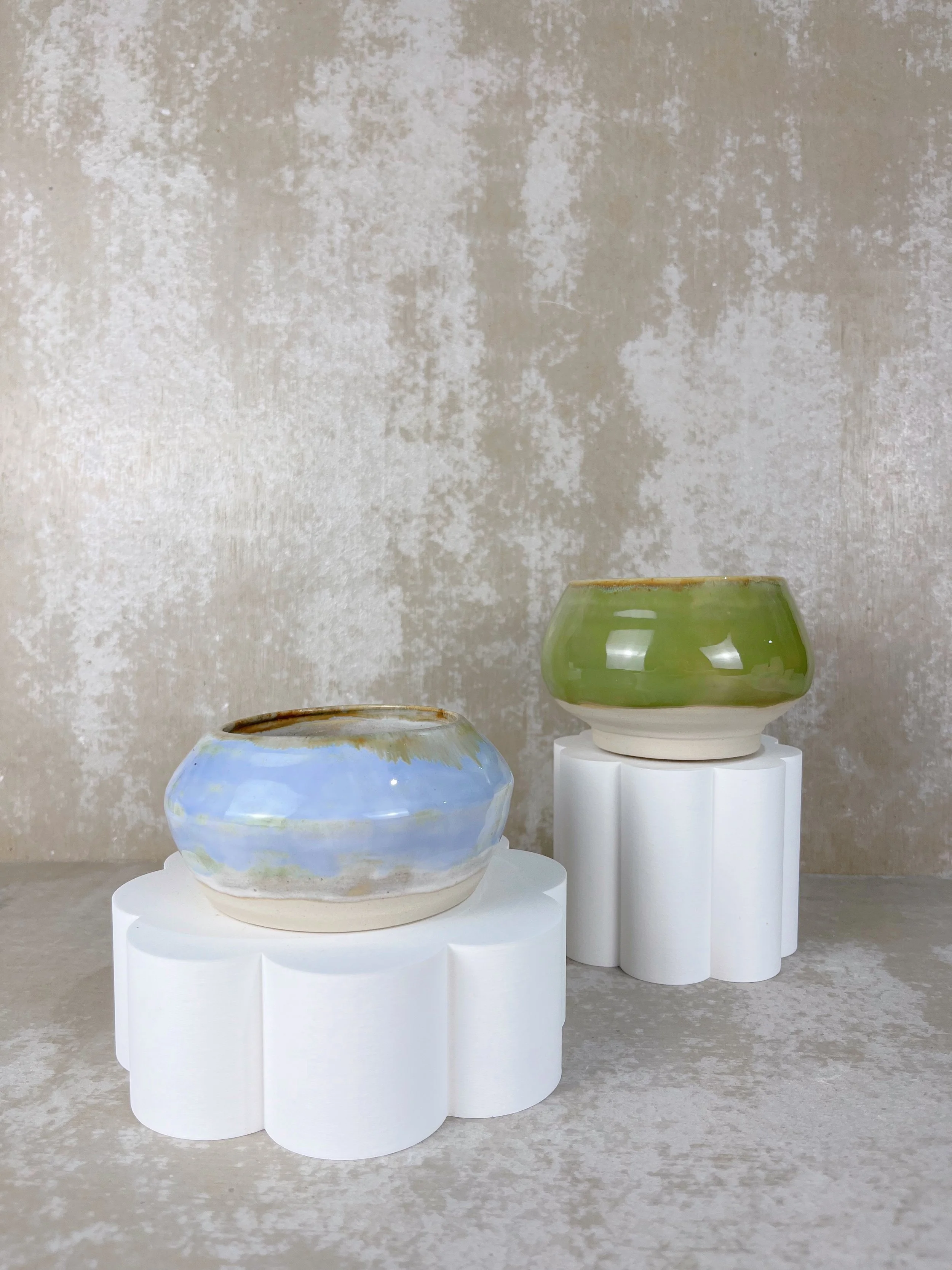 Stoneware Bowls glazed in combinations of Artic blue and Lustrous Jade.