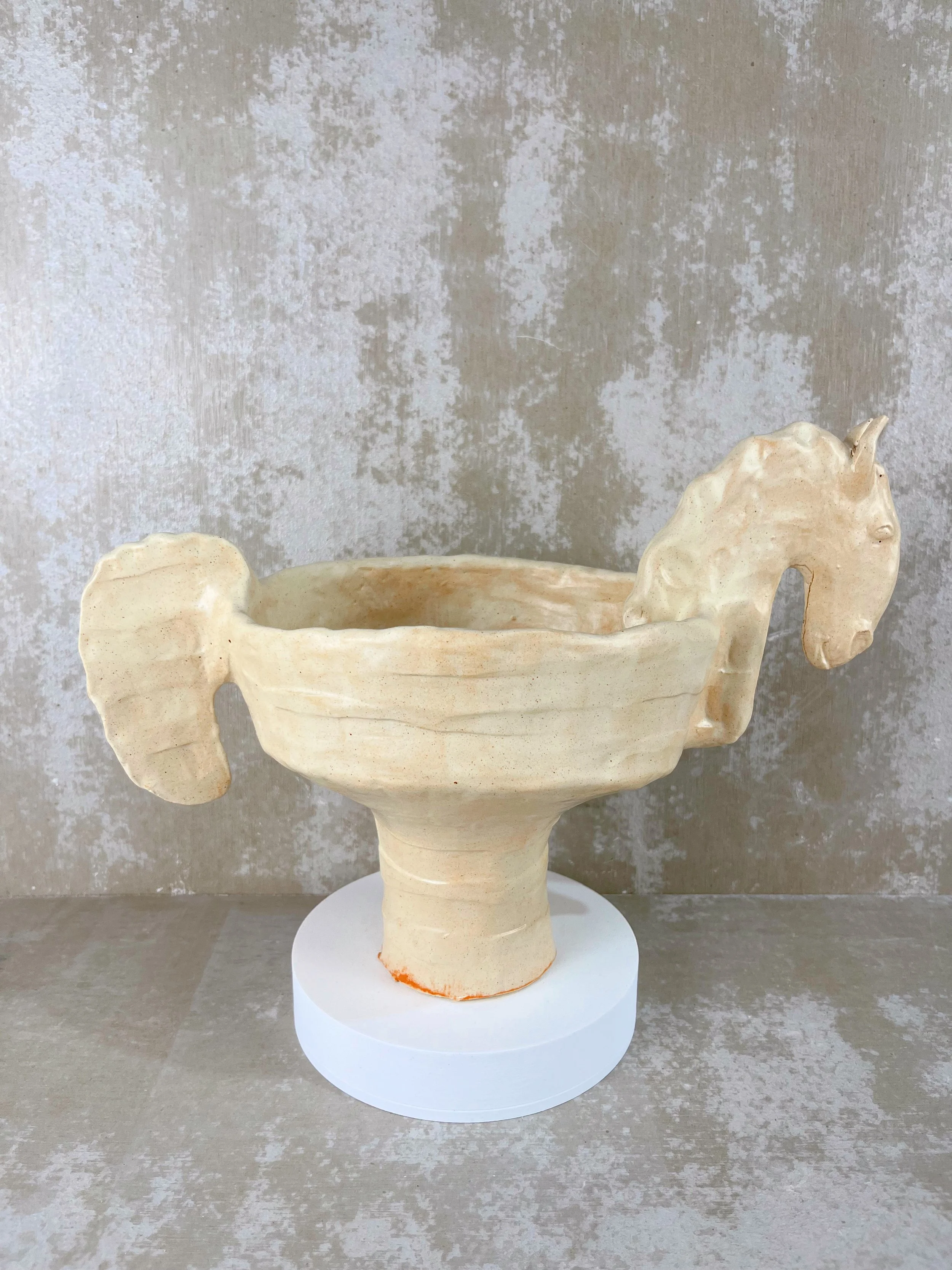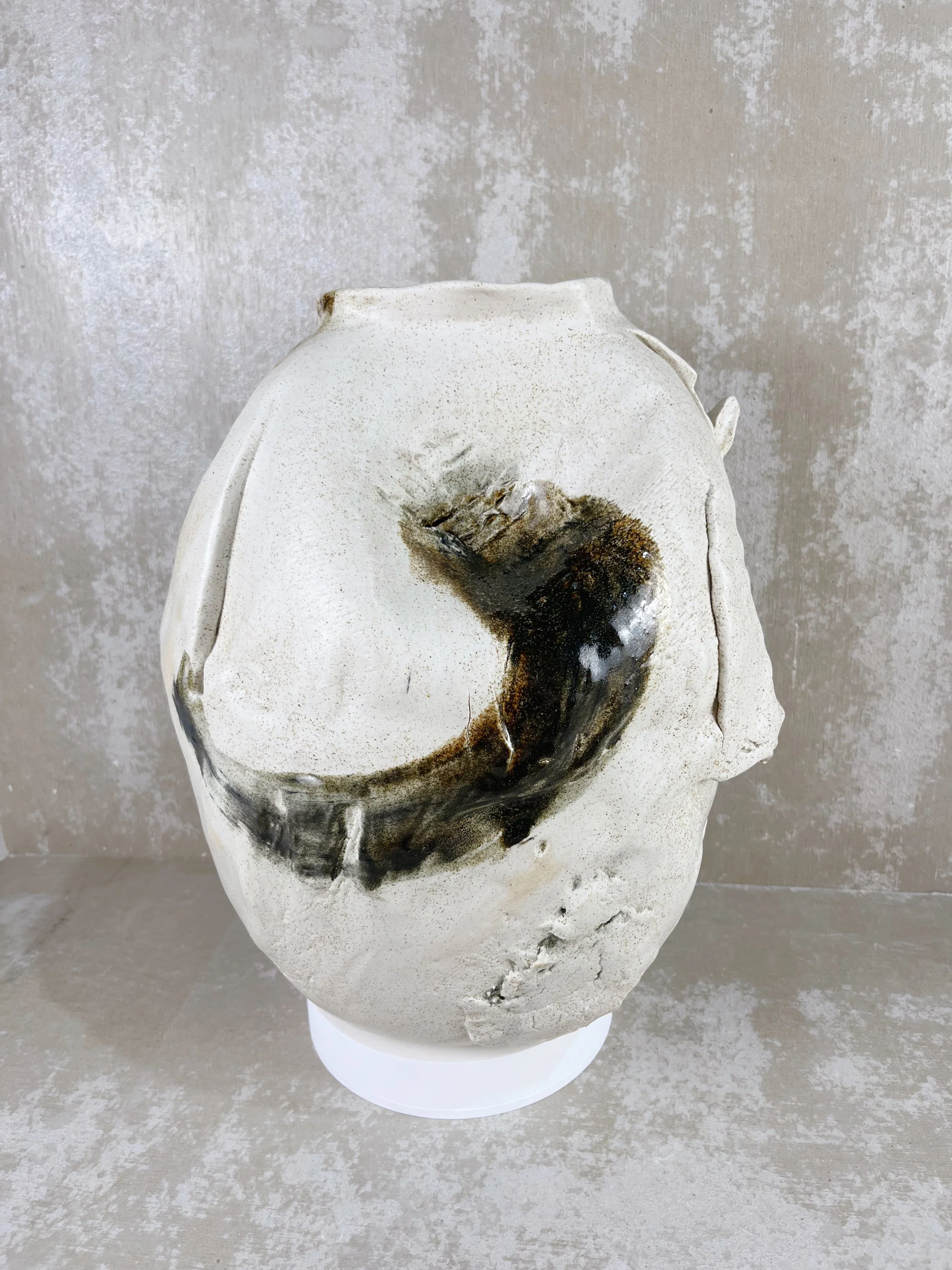 Inspired by Maori culture this vessel is both sculptural and functional with duel openings and internal glazing.