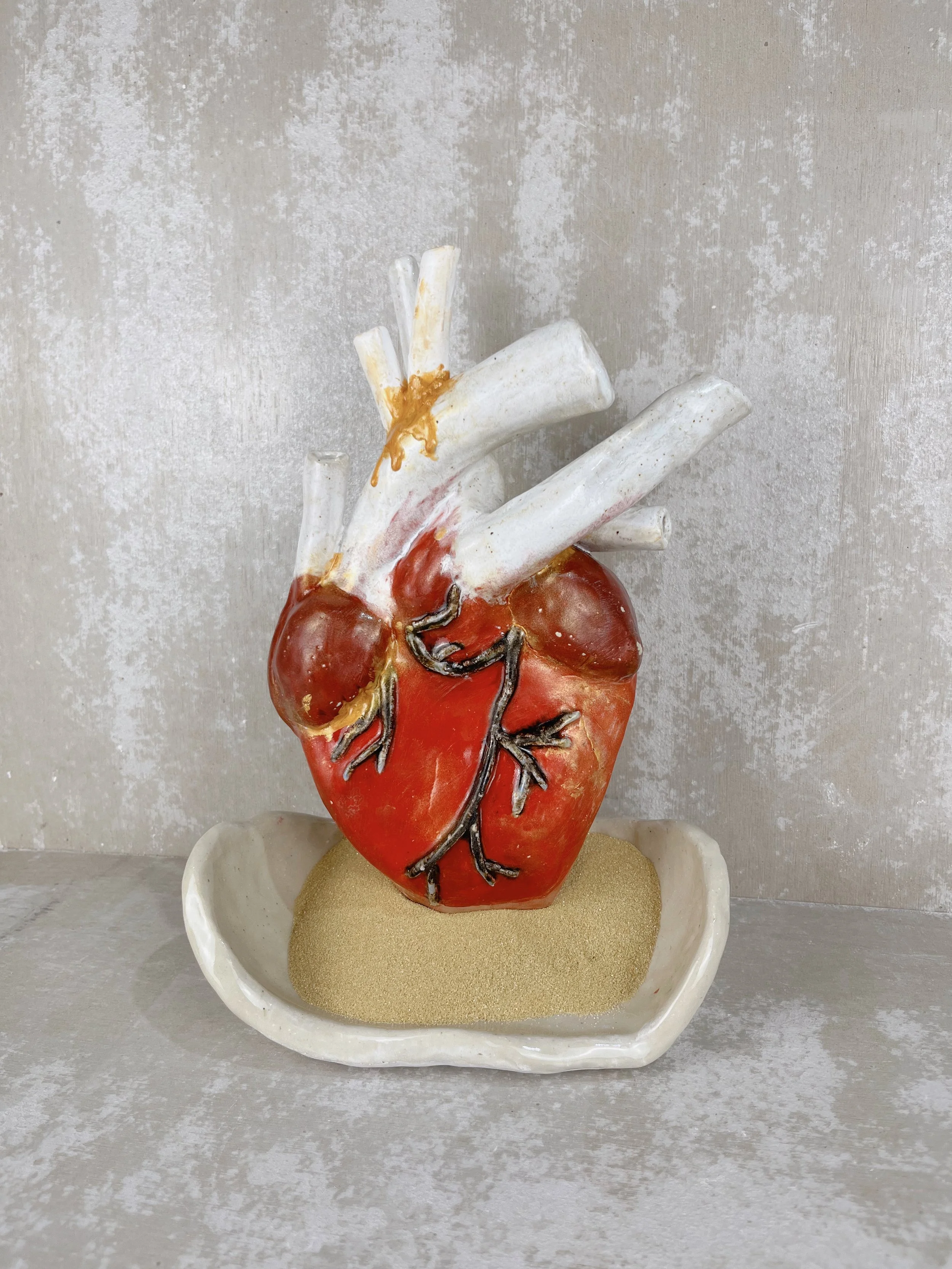 The ceramic heart is a poignant exploration of the emotional journey that accompanies infertility and the intense experience of failed IVF treatments. The heart is rich in texture, with deep, jagged cracks that run through the surface in a chaotic and unpredictable pattern, reflecting the intense turmoil and devastation of these experiences. The cracked texture is further accentuated by the subtle shading and subtle colouring, which amplify the depth and layers of the piece. The heart is delicate but larger than usual, with a subtle sheen that speaks to the fragility and vulnerability inherent in the human experience. As a symbol of love, hope, and intense desire, this ceramic heart tells a story of loss and pain, but also of resilience, strength, and the power of the human spirit to overcome even the most difficult challenges.