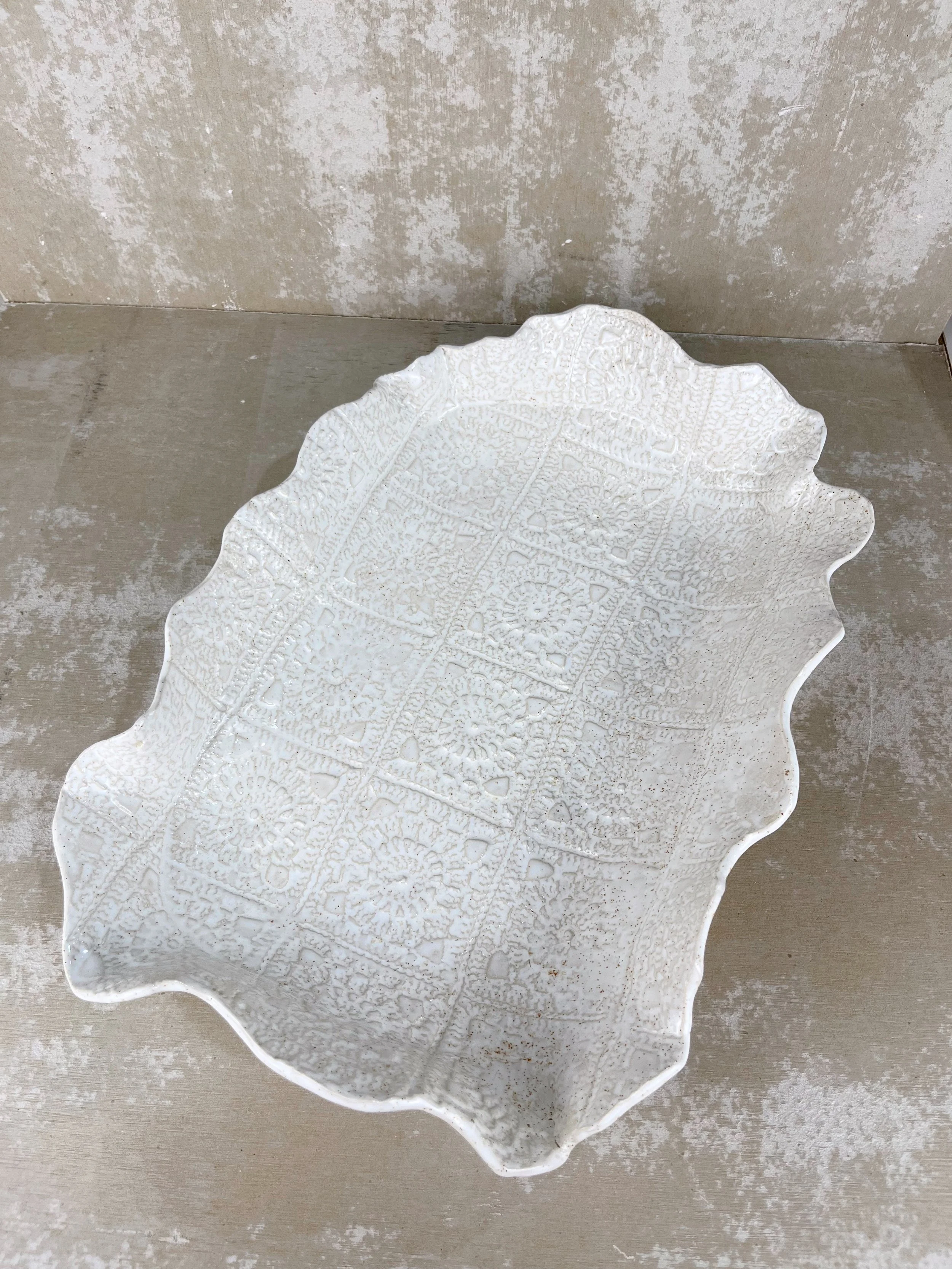 One of three large lace serving dishes to be handed down to the artists’ daughters.